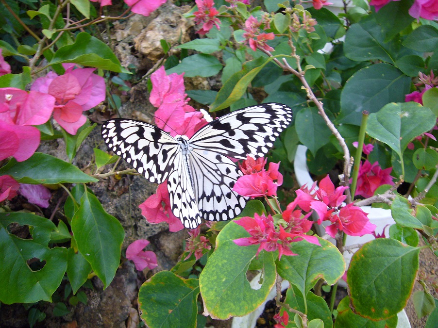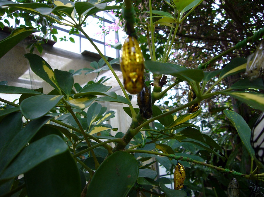 過去に私が行ったところでは、サナギガラス越しに展示されているところばかりでしたので、由布島の蝶々園のように直に見ることができるのはめずらしいのかもしれません。